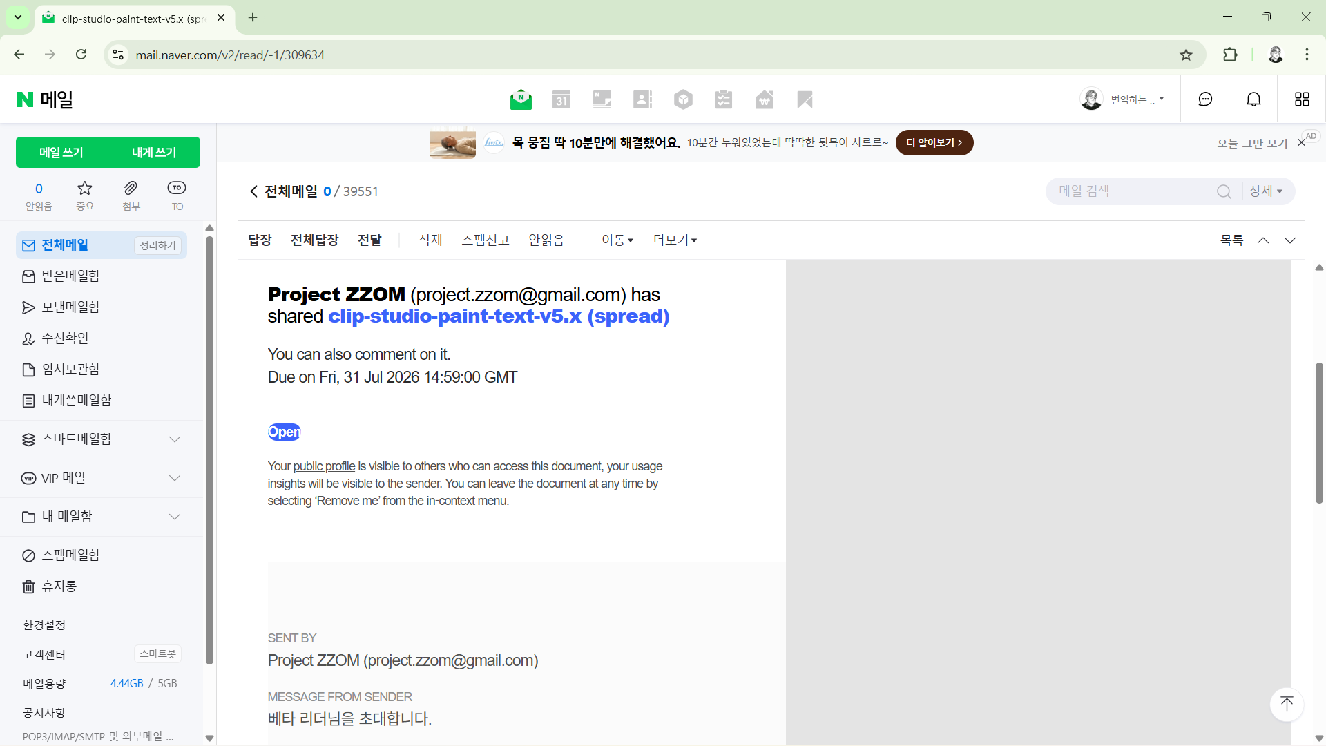 - 베타 리더는 초대 메일을 받습니다.