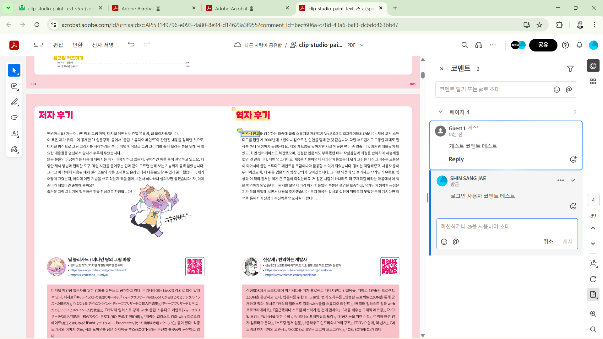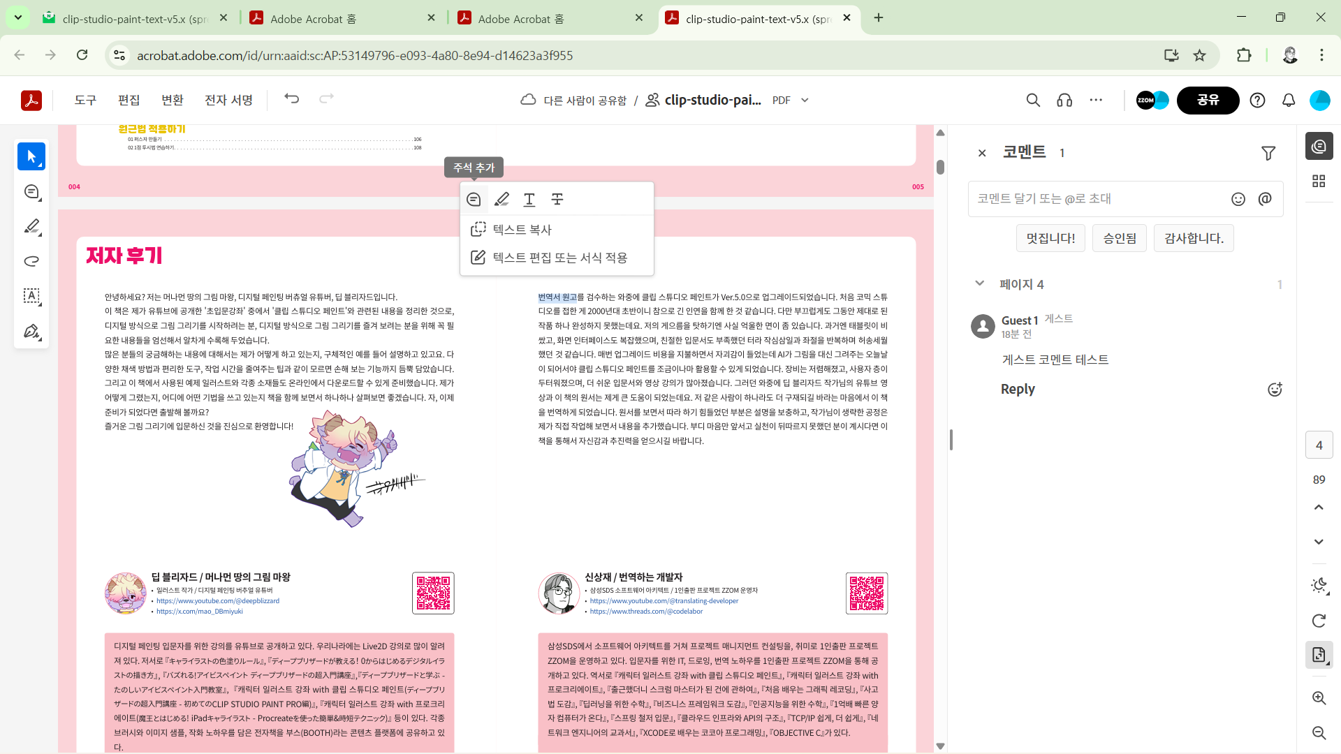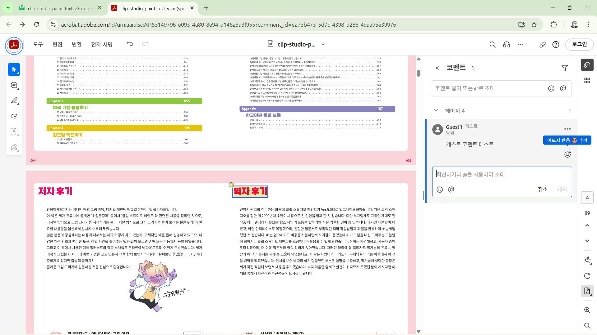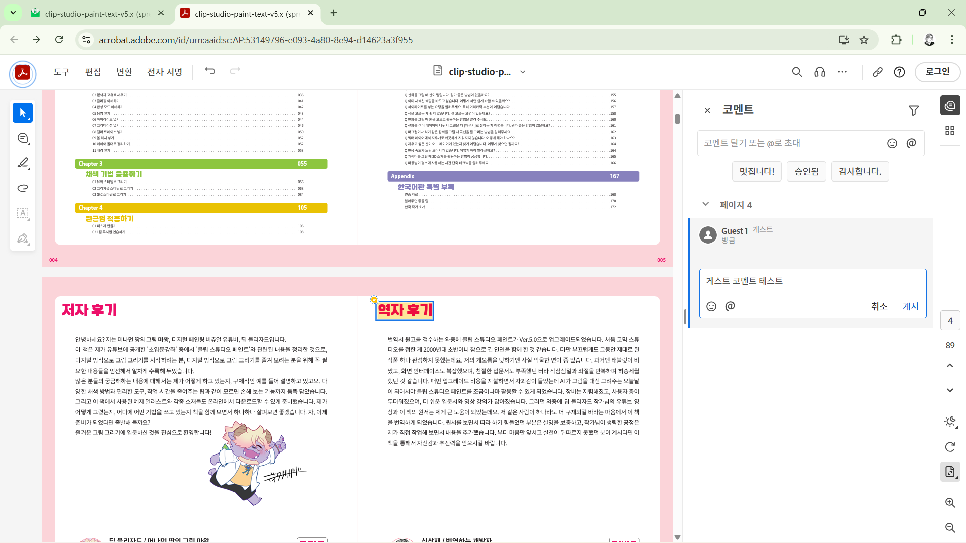 캐릭터 일러스트 강좌 with 클립 스튜디오 페인트 출간을 앞두고 베타 리딩 절차를 안내하는 내용입니다.