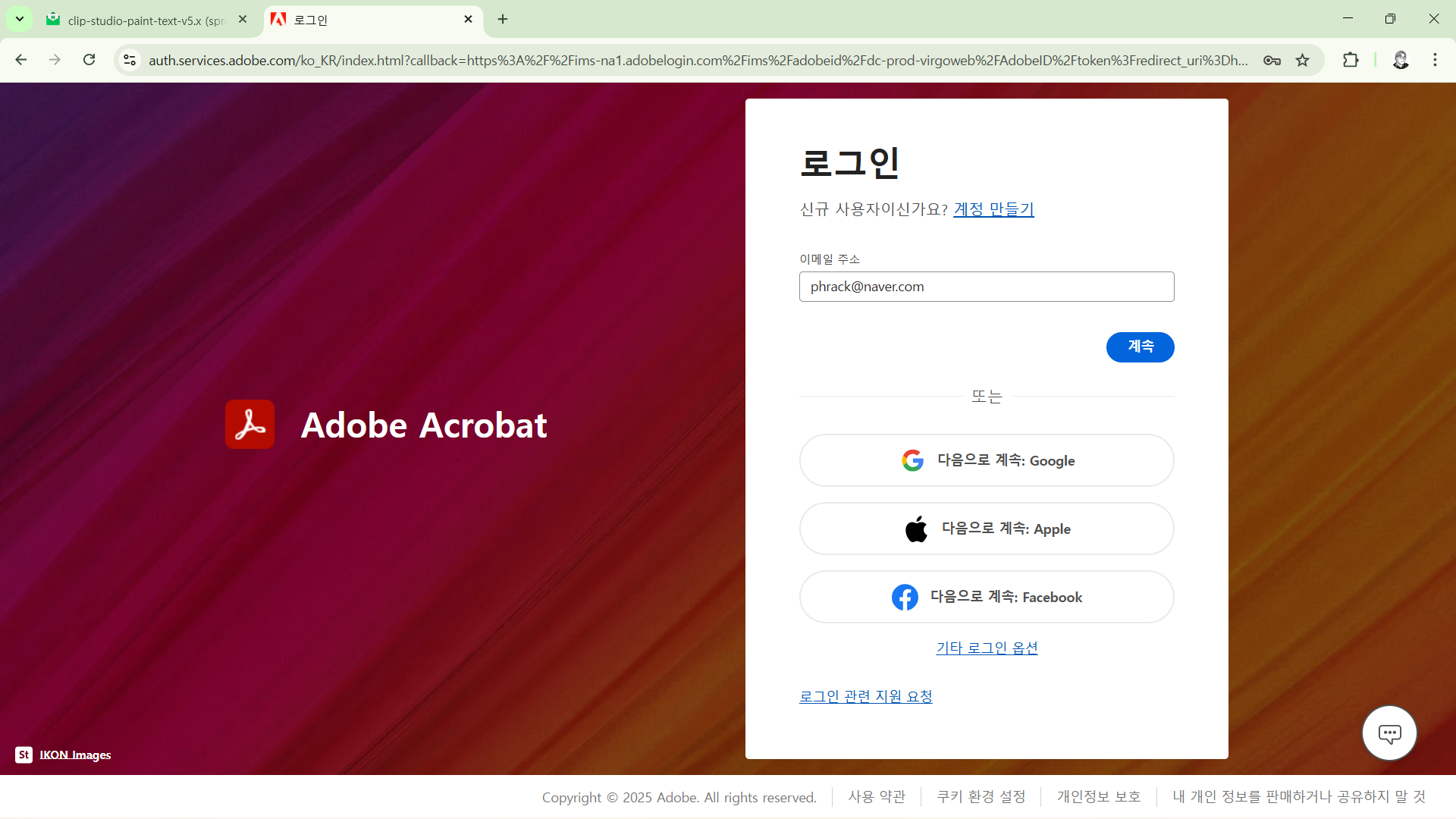 - Adobe 계정이 없다면 Google 등의 계정을 연동해서 가입해도 됩니다.
