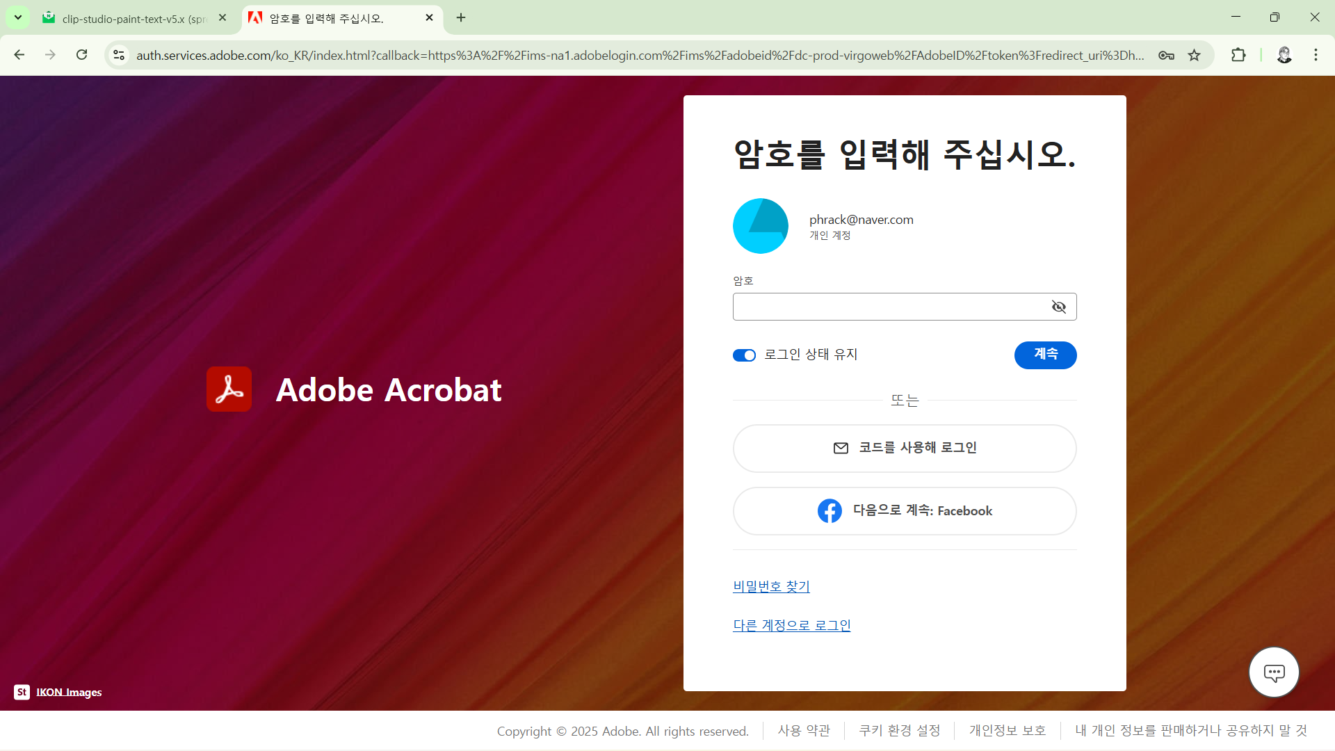 - 이미 Adobe 계정이 있다면 로그인을 합니다.