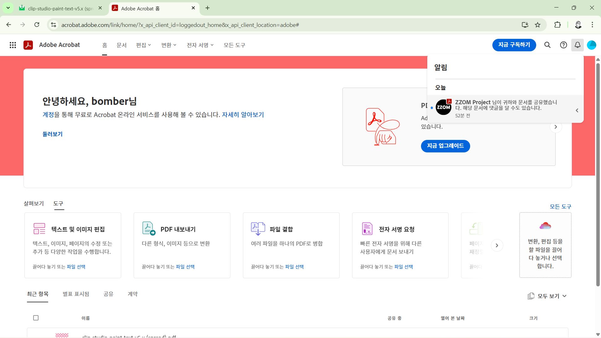 - Adobe Acrobat 온라인 서비스가 표시됩니다.